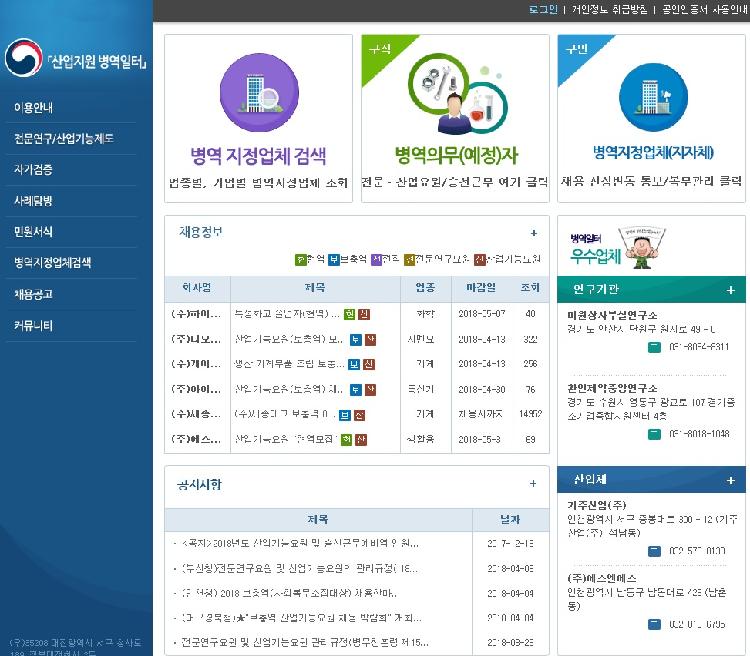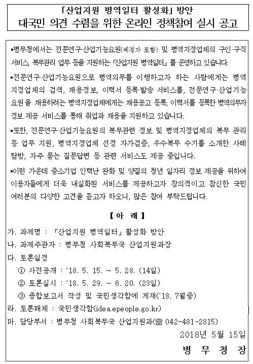 * 산업지원 병역일터 바로 가기 http://work.mma.go.kr