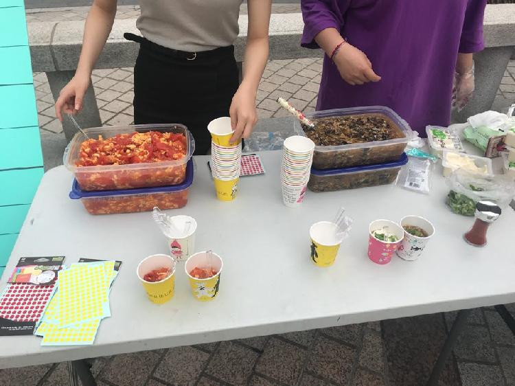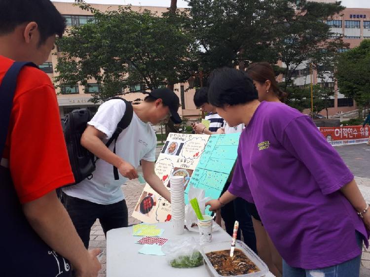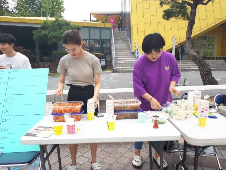 이러한 음식에 대한 피드백을 나눈 후, 경희대학교 청운관 앞마당에 부스를 설치하여 무료시식회를 진행하였습니다.