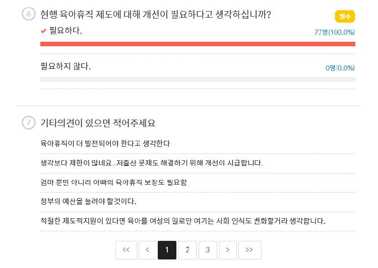 지난 1차 설문조사 결과, 현행 육아제도의 개선이 필요하다는 결과를 얻을 수 있었습니다.