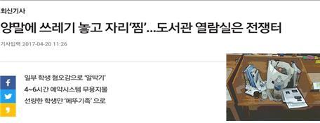 위 기사와 같이 도서관 열람실을 이용하는 데 있어 자리독점 때문에 여러 이용자들이 큰 불편을 겪고 있는데요. 이를 규제하기 위해 현재 각 지역의 도서관들은 개별적인 규정을 실시하여 열람실 사용을 제한하고 있습니다.
