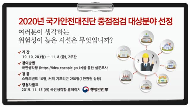 국민여러분들께서 제시하여 주신 의견을 반영하여 내실있는 2020년 국가안전대진단을 추진하도록 하겠습니다.