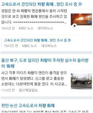 하단에 사진을 보면 아시겠지만 제가 다루려고 하는 문제는 차량 화재입니다. 차량 화재는 국민 재난 안전포털의 통계에 따르면 1년에 약 6천 건 발생으로 하루로 보면 평균 16건이 발생할 정도로 빈번하게 일어납니다. 그리고 그 원인엔 교통사고로 인한 충격 이외에 엔진과열, 브레이크 마찰열, 차내 전선들의 합선, 연료의 누유(연료가 새는 것) 등이 있습니다. 이는 교통사고와 같은 위급상황이 아니라 특별한 문제가 없어 보이는 평상시에도 내가 모르는 차의 결함이 있다면 차량 화재가 충분히 발생할 수 있음을 의미합니다.