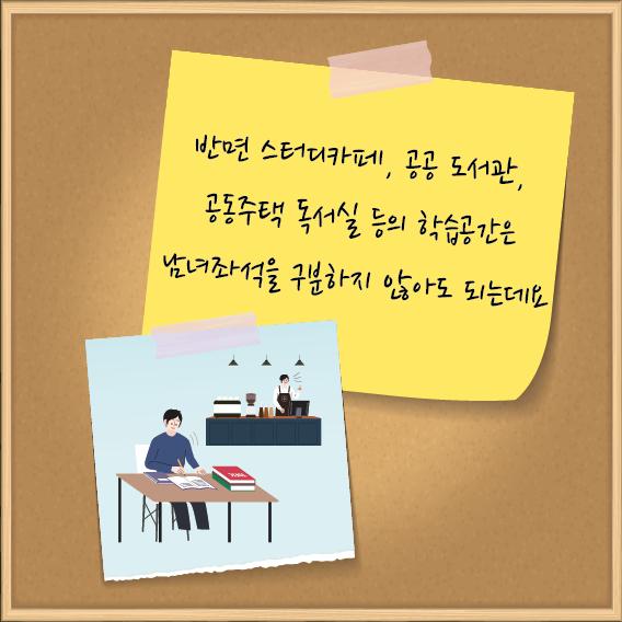 독서실 남녀혼석 관련 의견조사 결과 다음과 같이 나왔으며, 조사결과를 바탕으로 개선이 필요한 사항과 보완이 필요한 사항들을 정리하여 진행해 나가겠습니다.