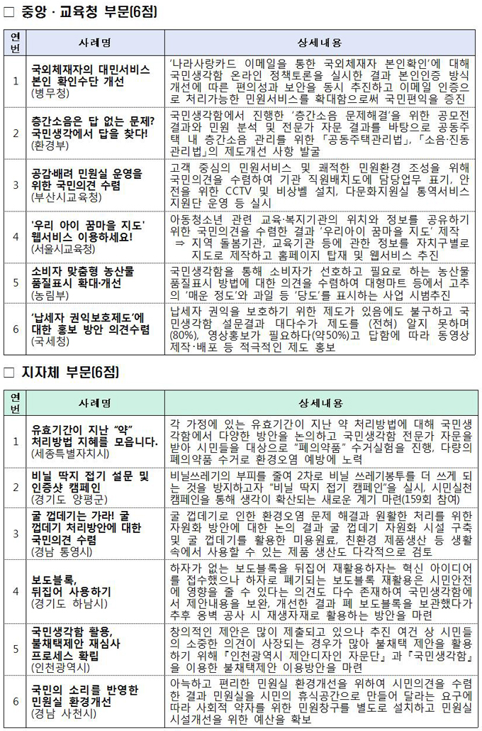 - 일반국민/중앙, 교육청/지자체 각 분야별로 2건 씩 추천해주시면 됩니다.^^