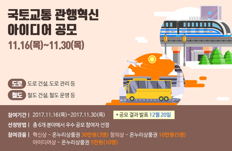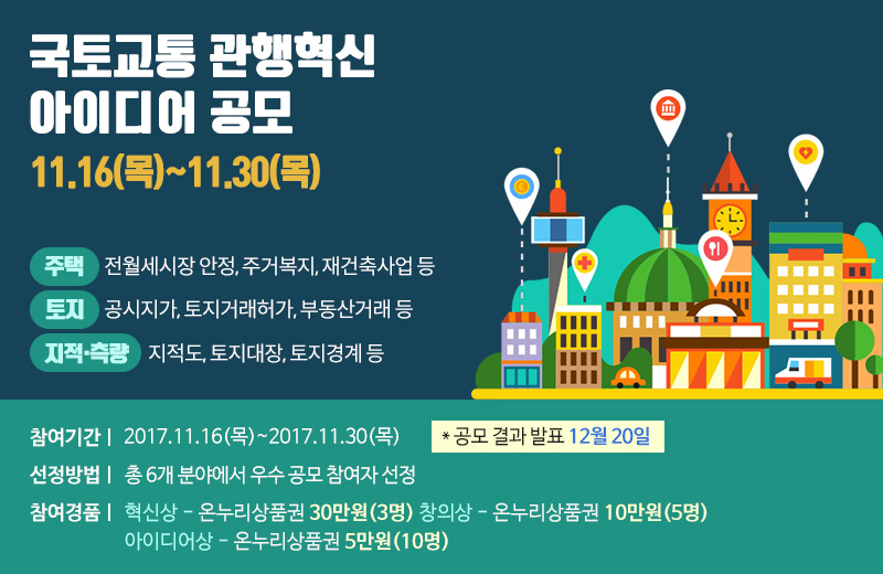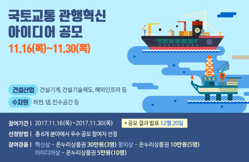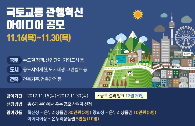 국토교통 관행혁신 아이디어 우수작 선정 결과를 알려드립니다.