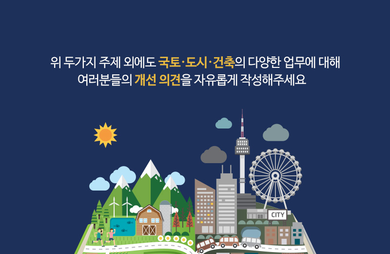 우리부는 많은 분들이 제안해 주신 좋은 의견을 참고하여 품질 높은 국토교통 정책과 행정서비스로 보답할 수 있도록 더욱 노력하겠습니다.