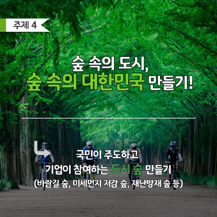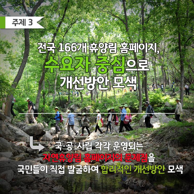 - 산림청 정책 혁신 과제에 대하여 온라인(국민생각함, 국민신문고 등)/오프라인(국민의 의견이 필요한 주요 회의 등)을 통한 자유로운 의견 제시