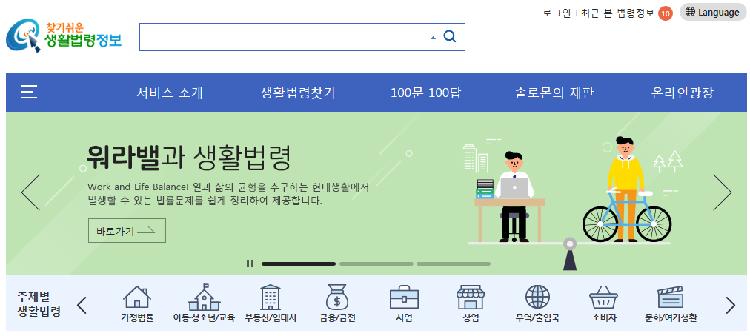 법제처에서는 복잡하고 어려운 법령정보를 알기 쉽게 재가공하고 설명하여 제공하는 찾기 쉬운 생활법령정보를 운영하고 있습니다.