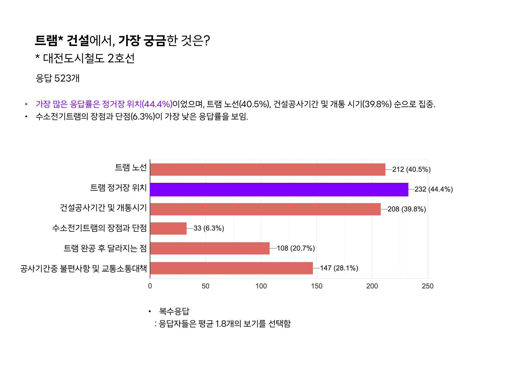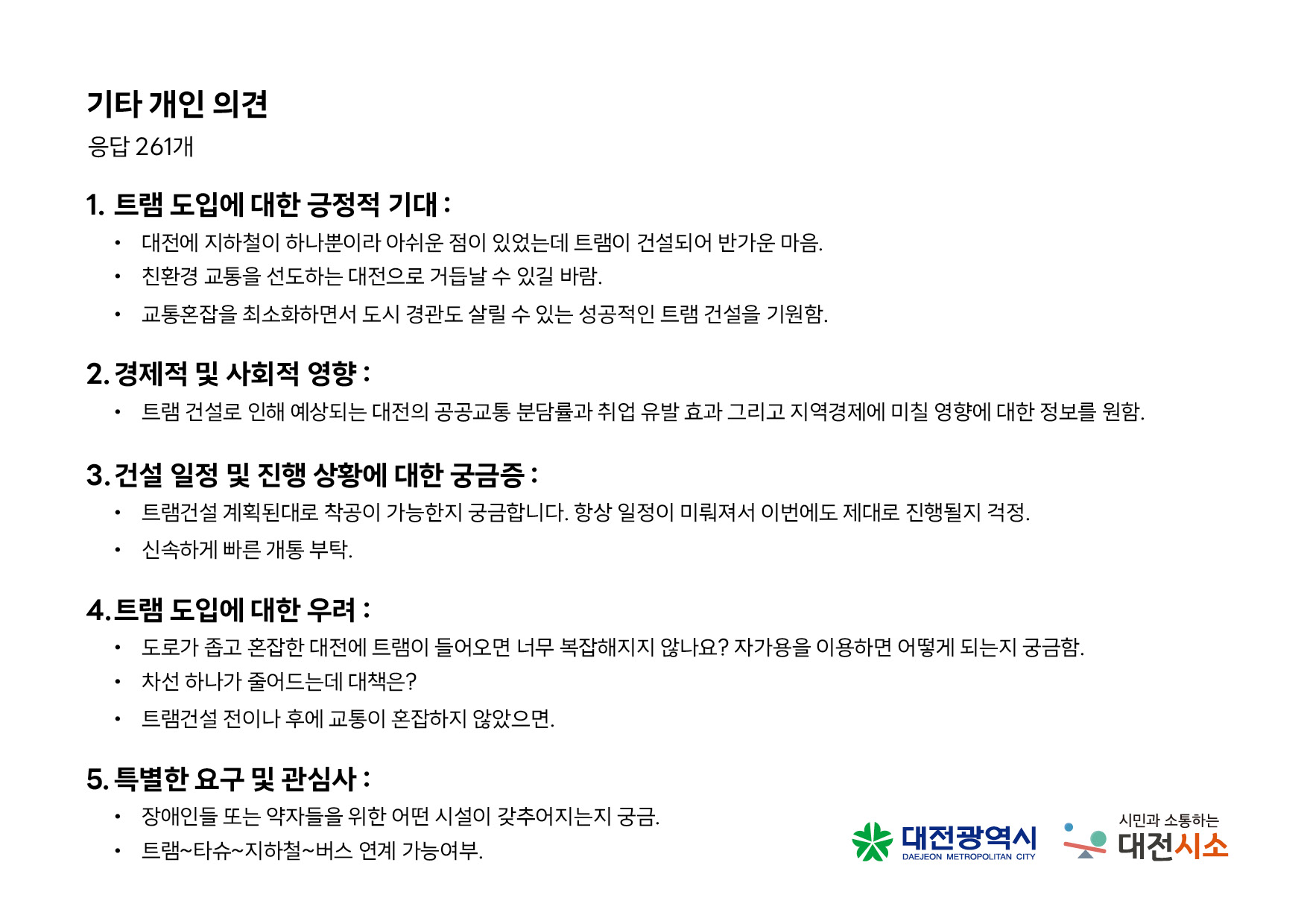 대전 도시철도 2호선(트램) 공사기간 중 가장 필요하다고 생각하는 정책 시민의견 수렴