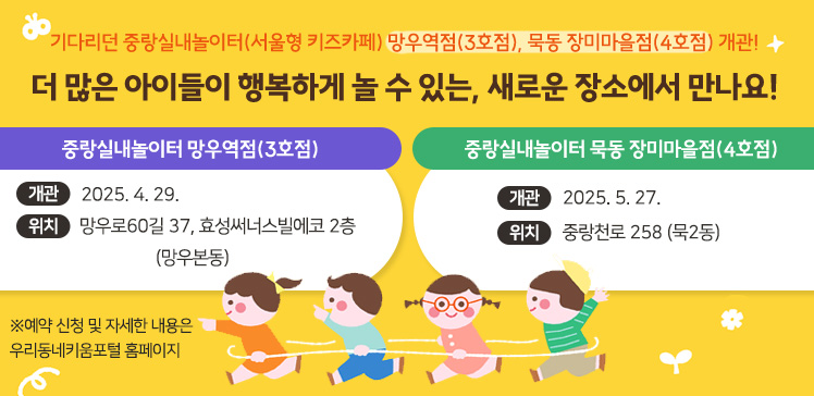더 많은 아이들이 행복하게 놀 수 있는 새로운 장소에서 만나요~