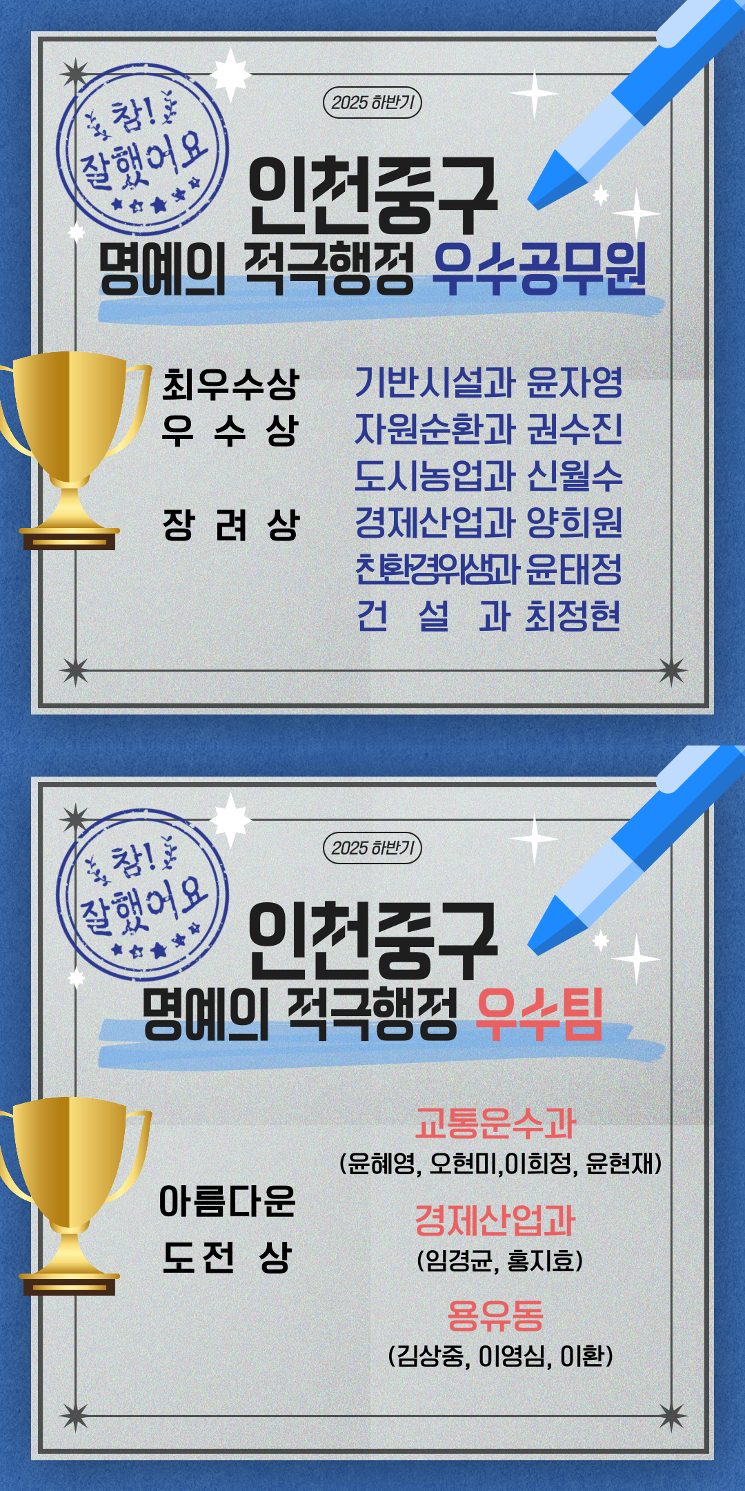 인천광역시 중구 2025년 하반기 적극행정 우수사례 결과 발표