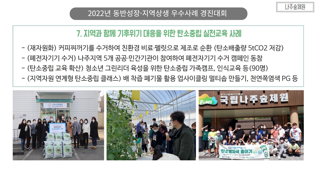 ... '22년 3월 대형산불로 인해 큰 피해를 입은 울진지역의 산불피해지를 중심으로산림훼손지의 복원과 함께 산불피해 ... 기후위기와 탄소중립 + 산불재난과 산림복원 + 자생식물과 지역 상생을 운영 컨셉으로 조성될 예정입니다.(생각모음)ㅇ울진산림생태원의 운영컨셉을 고려하여 울진 및 경북지역의 산불피해지에서 목재로 활용되지 못하고 버려질 수 있는 ...