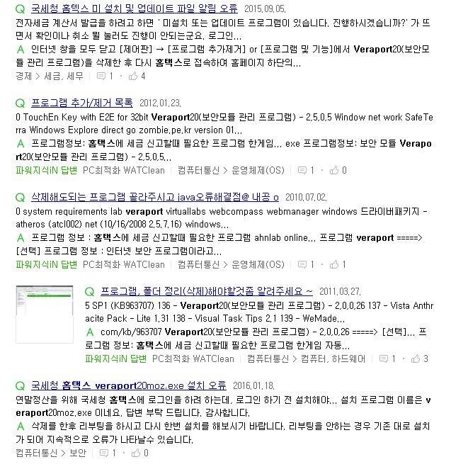 이러한 통합보안설치프로그램이라는 'veraport'가 정형화되어 상거래,인터넷뱅킹,국가기관등에 사용되었으나 이 프로그램에는 예전 엑티브엑스와 비슷한 문제점이 계속되고 있습니다.