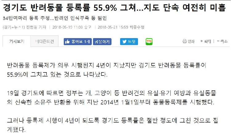기사에서 보시는 것처럼 반려동물 등록제는 2014년에 의무화되었음에도 불구하고 현재까지 저조한 등록률을 보입니다. 최근 우리나라의 반려동물을 키우는 인구가 1,400만 명을 넘어가고 있고, 반려동물로 인해 여러 피해가 속출하고 있는데도 반려동물 등록제가 제대로 효과를 내지 못하고 있다는 점은 큰 문제입니다!
