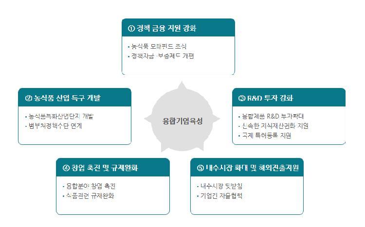 우리 부에서는 농업인과 중소기업이 유기적으로 원료조달ㆍ제조가공ㆍ기술개발 연계를 통해 새로운 제품을 생산하여 고부가가치를 창출할 수 있도록 농공상융합형 중소기업 활성화 사업을 진행하고 있습니다. 농촌 융복합산업(6차 산업화) 등 유사사업과의 중복성 해소 및 단편적 지원사업 위주의 정책개선을 위해 연구용역을 추진하고 있습니다.
